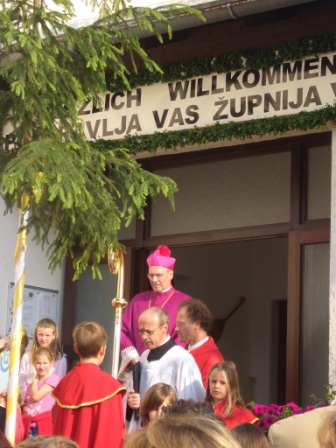 9. Juni 2007: Empfang Bischof Dr. Alois Schwarz.Anlässlich der diesjährigen Firmung kam auch Bischof Dr. Alois Schwarz nach Köttmannsdorf. Neben der Begrüßung durch unseren Herrn Pfarrer, der Gemeindevertretung und diverser Vereine haben ihn auch wir Jagdhornbläser mit der "Begrüßung" willkommen geheißen und ihn beim Einzug in die Kirche mit Jagdhornsignalen begleitet.![]() ![]() ![]() ![]() ![]() ![]() ![]() > > > > >![]() |