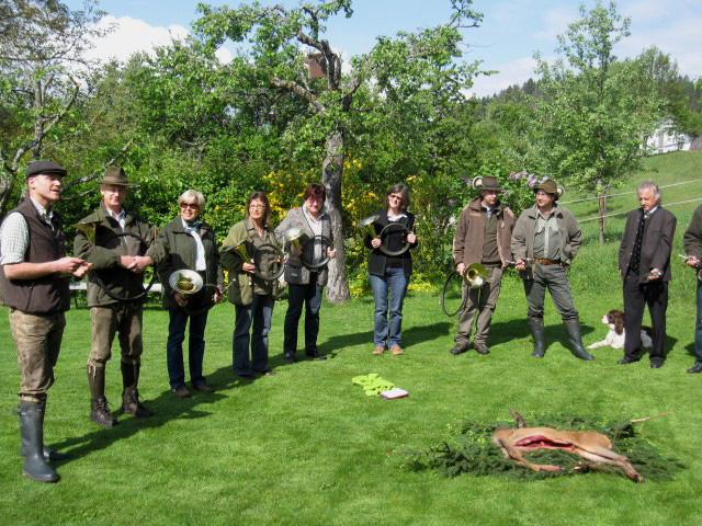 Schon am frühen Morgen fand die traditionelle 1. Mai-Ansitzjagd auf Jahrlinge und Schmalgeißen statt. Die Faktoren für eine erfolgreiche Jagd - Vorbereitung und Revierkenntnis - konnten die Jäger kaum nutzen, es wurde ein einziges Stück erlegt. Waidmanns Heil dem glücklichen Schützen Julij Iskra! Den Einsatz der Jagdhornbläser konnte dies jedoch nicht schmälern und nach der Begrüßung wurde als letzte Ehrerweisung "Rehtot" geblasen. Jagdobmann Thomas Modritsch dankte allen für ihr Engagement und wünschte den Jägern Zeit, Freude und Ausdauer für das neue Jagdjahr. Mathias Srienc, Organisator der "Fuchstrophy", bedankte sich für die Zähigkeit und Kondition und ehrte den erfolgreichsten Schützen Helmut Kaidisch. Peter Petritz umrahmte mit beschwingten Melodien auf der Harmonika das gesellige Beisammensein und so manchen nicht nur jagdlichen Erfahrungsaustausch. ![]() ![]() |