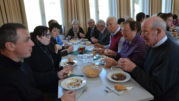 Nach der Messe wurde zur Agape in den Pfarrsaal zur Stärkung und geselligem Verweilen bei Rehragout, Mehlspeisen und einem guten Tropfen eingeladen.