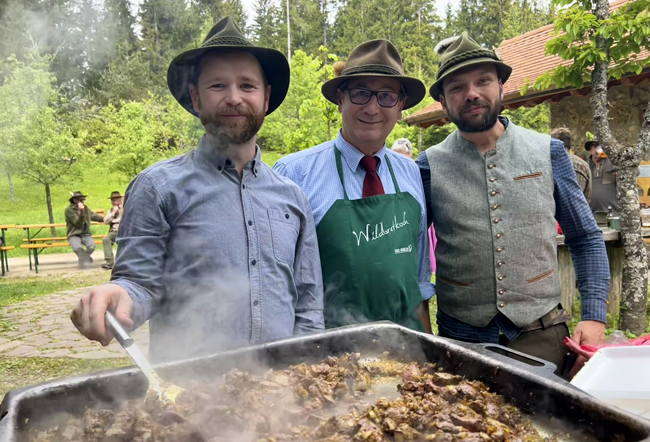 Nach dem Fotoshooting freuten sich alle auf die kulinarische Stärkung vom Dreier-Team Karl und Lorenz Modritsch sowie Kevin Scharf - eine excellent frisch zubereitete Leber.