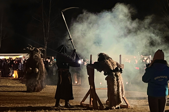 Um das Brauchtum lebendig zu halten wurde von der Perchtengruppe SeenTeufel Keutschach, der einzigen Frauen-Krampusgruppe in Kärnten, heuer erstmals die "Rauhnacht Keutschach" auf der Liendlwiese veranstaltet. Die Schiachperchten - wilde Tiere, teuflische Gesellen und furchterregende Perchten - zogen rund um das Feuer und vertrieben mit Glockengeläut die dunklen Geister des Winters, während die Schönperchten Licht, Fruchtbarkeit und Neubeginn symbolisierten. Auf Einladung von Obfrau Stefanie Safran umrahmte die Jagdhornbläsergruppe Köttmannsdorf musikalisch den mystischen Reigen mit Parforcehornklängen. Danke für diese tolle Veranstaltung, die uns die geheimnisvolle Welt der Perchten näher gebracht hat.